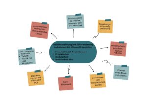 Besonders leistungsstarke bzw. kreative Schüler:innen können sich auch „freien“ Themen widmen, solange dieses planvoll geschieht. Mit ihnen werden Verträge für den Zeitraum der freien, individuellen Arbeit geschlossen. Ziel ist es, dass alle Schüler:innen die Verantwortung für ihr Lernen übernehmen und selbstständig arbeiten.