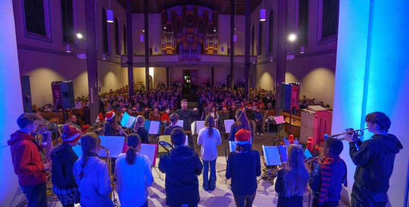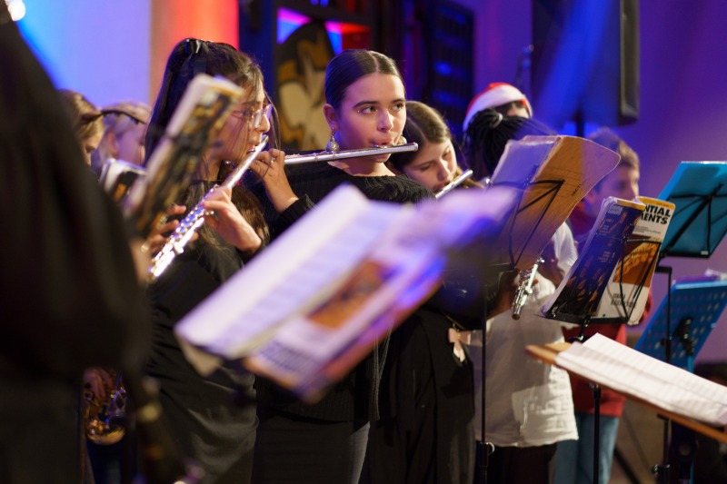 Festliche und fetzige Klänge erfüllten am Abend des 14. Dezember die vollbesetzte Christuskirche, als die Musiker*innen des ELSA zum diesjährigen Winterkonzert aufspielten. Alle Ensembles gaben in einem kurzweiligen und bunten Programm Einblicke in die vielfältige Probenarbeit der letzten Wochen und Monate.