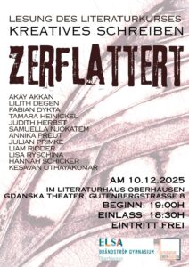 In der diesjährigen Lesung präsentieren Schüler:innen des 12. Jahrgangs selbst verfasste Erzählungen und Gedichte, die in der ein oder anderen Weise mit „der Motte“ in Verbindung stehen: Existenzielles, Surreales, Psychopathologisches, Zeitreisen, Traum und Wahrheit und – natürlich! – Verwandlungen werden live zu hören und zu sehen sein. Kommt, und fliegt mit uns ins Licht!