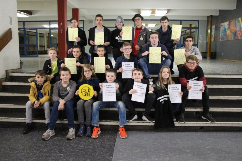 Ein großes Dankeschön an Frau Brans, die Mutter von Rouven, die Fotos und allen Schülern und Team-Anstecker gemacht hat, und Herrn Matthias, dem Vater von Falk, der beim ganzen Weg und beim Turnier mit auf die Schüler geachtet hat.