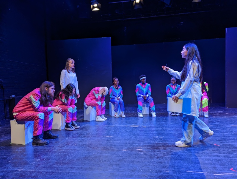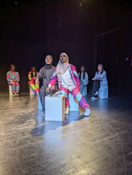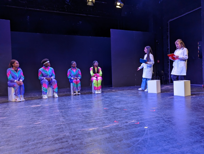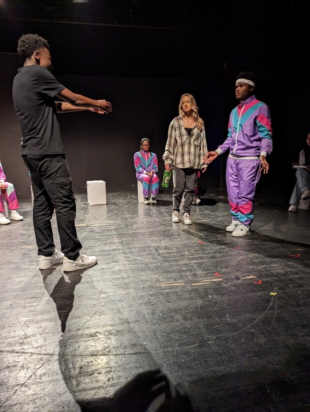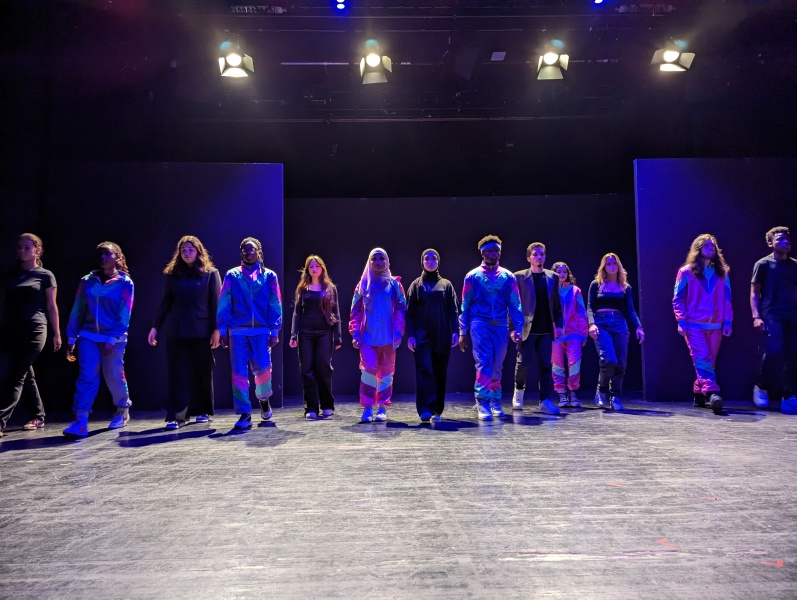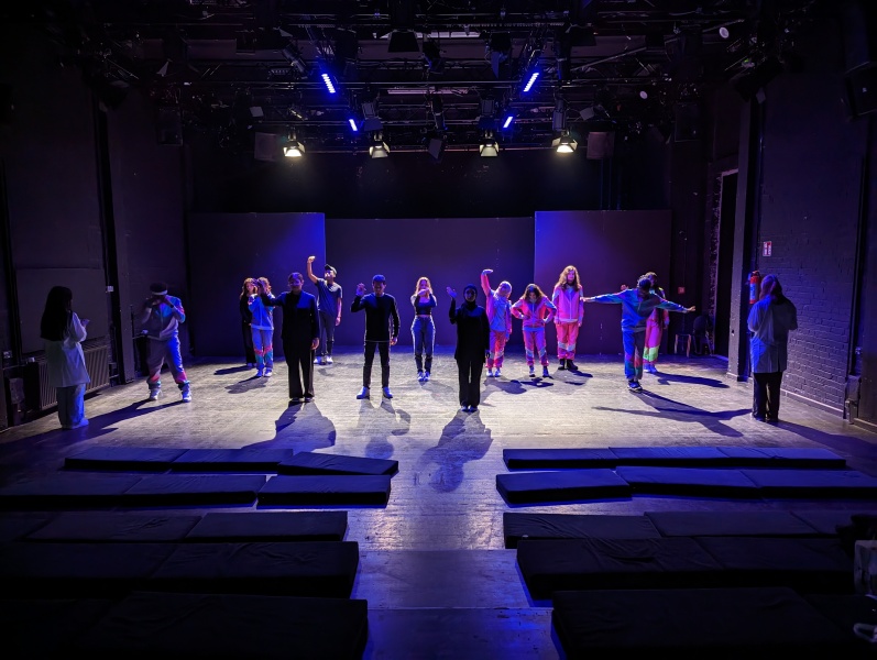 Der Q1-Projektkurs Englisch nahm vom 5. bis 7. Juni gemeinsam mit dem WP-Kurs des Bertha-von-Suttner-Gymnasiums und den Literaturkursen der Heinrich-Böll-Gesamtschule, der Gesamtschule Osterfeld sowie dem Heinrich-Heine-Gymnasium an den von der Theaterpädagogin Anke Weingarte organisierten Schultheatertagen des Theaters Oberhausen teil. Da unser selbst entwickeltes Stück „H.O.M.E.“ erst am Mittwoch im Studio Premiere hatte, konnten wir die ersten beiden Tage relativ entspannt angehen, bevor dann der 7. Juni in aller Herrgottsfrühe mit der Bühnenvorbereitung, dem Proben und der Einrichtung von Licht- und Tontechnik begann. Sowohl für die Kursteilnehmer:innen als auch für unseren Technik-Experten Max Gillner aus der 8b war es eine tolle Erfahrung, in einem „richtigen“ Theater aktiv zu sein und vor einem beachtlichen Publikum – bestehend aus den Festivalteilnehmer:innen, Eltern, Freunden und Freundinnen sowie einigen Kolleg:innen vom Elsa – das wochen- und monatelang entwickelte Stück zu spielen.