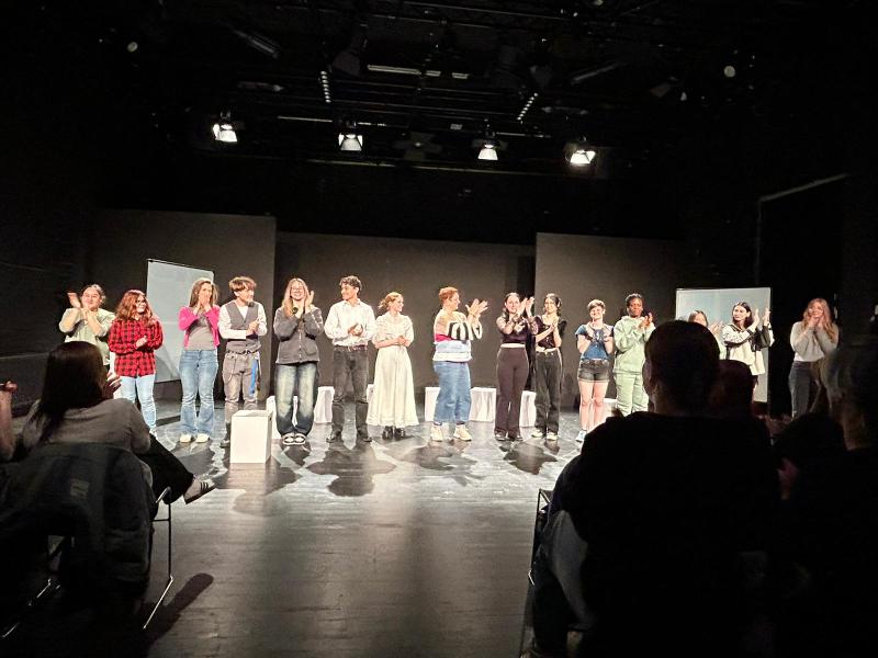 Doch nicht nur auf der Bühne konnten die Schüler:innen Theaterluft schnuppern: In neun verschiedenen Workshops (von Bühnenkampf und Bühnenfechten über Schauspiel, Impro-Theater und Tanz bis hin zu Maskenbildnerei) probierten sie sich unter der Anleitung professioneller Schauspieler:innen, Tänzer:innen oder Maskenbildner:innen aus. Die Ergebnisse der Workshops wurden am letzten Abend präsentiert und es war erstaunlich zu sehen, was an nur drei Tagen von den schulübergreifend zusammengestellten Gruppen erarbeitet wurde.