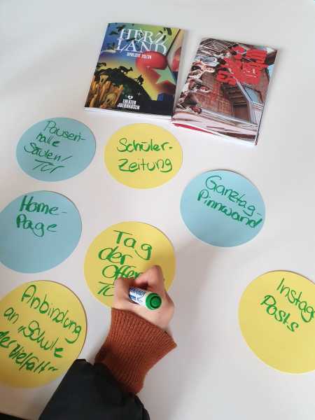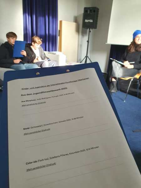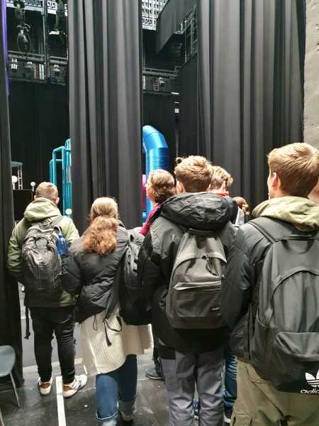 In der vergangenen Woche dann ging es im Rahmen des zweiten Moduls zu den nächsten Kulturstätten, zunächst in die alte Direktorenvilla an der Grillostraße, in der der Verein Internationale Kurzfilmtage e.V. seine Zentrale eingerichtet hat. Die Internationalen Kurzfilmtage Oberhausen gelten als das älteste Kurzfilmfestival der Welt und finden im nächsten Jahr bereits zum 70. Mal statt. Die SchülerInnen bekamen dort Gelegenheit, im Sichtungsraum verschiedene Kurzfilme aus den Einreichungen dieses Jahres für den Kinder- und Jugendwettbewerb kennenzulernen, eine offizielle Bewertung zu simulieren und angeregt zu diskutieren. Später gab es im Theater Oberhausen einen Blick hinter die Kulissen und auf das Bühnenbild einer aktuellen Produktion im Aufbau. Bei Getränken und Snacks folgte dann noch ein produktiver Ideenaustausch mit der Theaterpädagogin Anke Weingarte zu der Frage, wie das Theater Oberhausen neben der schon bestehenden Kooperation für eine breitere Schülerschaft zugänglich werden kann und welche Rolle die Kulturscouts in der weiteren Kulturarbeit an ihrer Schule spielen könnten.