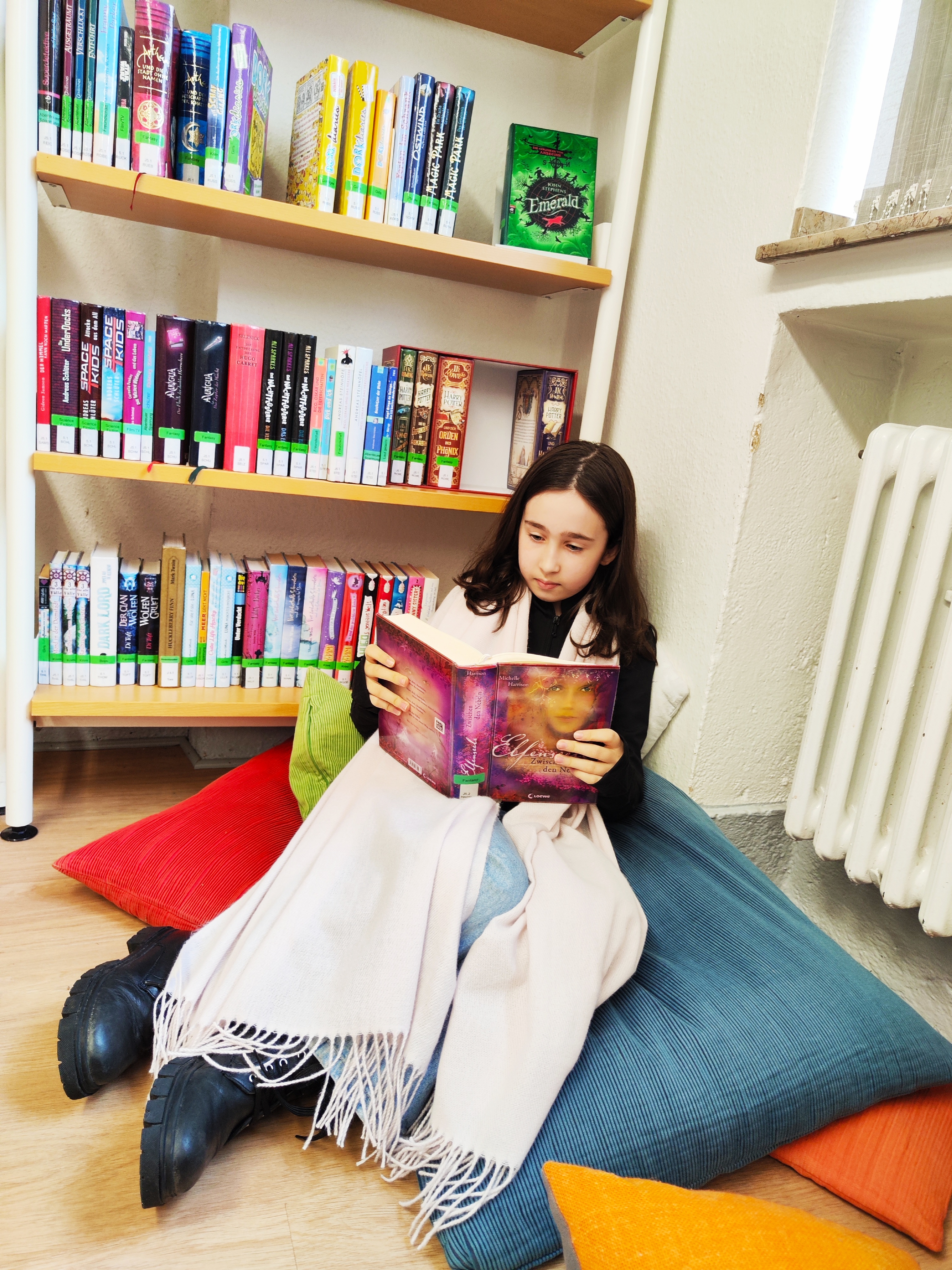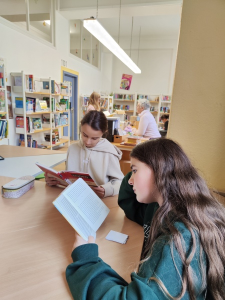 Die Bibliothek verfügt über eine vielfältige Auswahl an aktueller Kinder- und Jugendliteratur, Sachbüchern und Nachschlagewerken – perfekt, um Wissen zu vertiefen oder einfach in spannende Geschichten einzutauchen.  Eine Auswahl an verschiedenen Brett- und Kartenspielen vervollständigt das Sortiment.