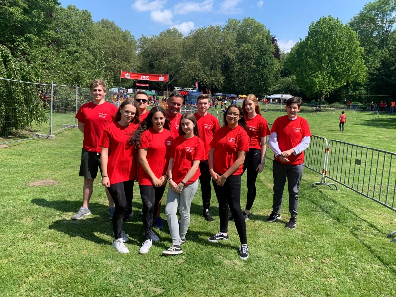 Einige Mitglieder des Sporthelfer- Teams unterstützten am Freitag, 24.05.2019, außerdem die Ruhrschule. Während des alljährlichen Sportfestes agierten sie als Schiedsrichter und Riegenführer und ermöglichten den Grundschülern ein gelungenes Sportevent.