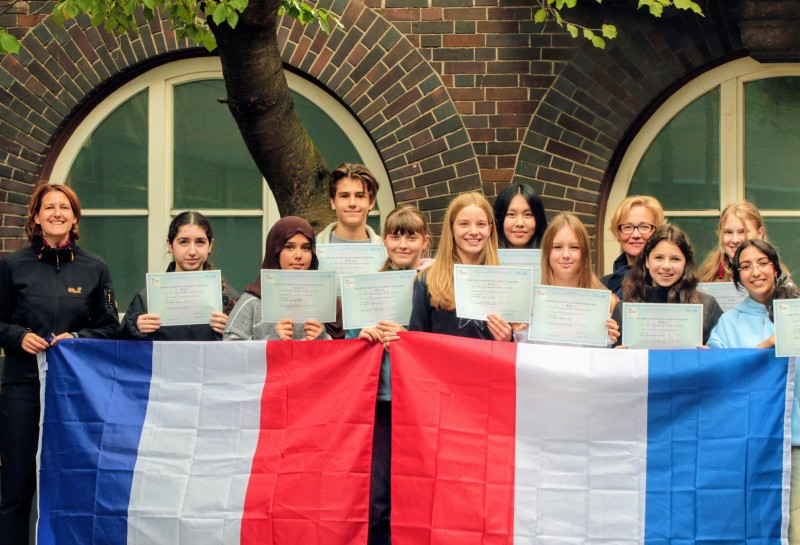 Die DELF-AG unter der Leitung von Frau Rosen ist offen für interessierte FranzösischschülerInnen. Ab dem 2. Halbjahr in Klasse 7 können diese hier auf die schriftliche und mündliche DELF-Prüfung vorbereitet werden. DELF ist ein von den Kultureinrichtungen der Französischen Botschaften verwaltetes französisches Sprachdiplom, das weltweit anerkannt wird. Es kann in sechs Stufen abgelegt werden, die den Niveaustufen des Europäischen Referenzrahmens entsprechen (DELF: A1 / A2 / B1 / B2 / DALF: C1 / C2), wobei Quereinstiege auf jedem Niveau möglich sind. Das Zertifikat ist unbegrenzt gültig.